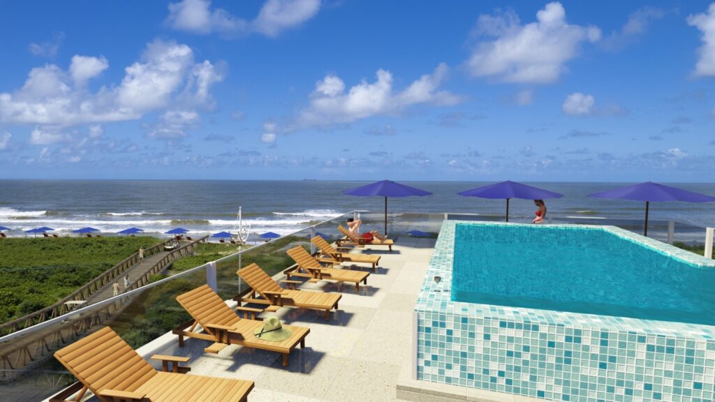 O hotel terá suítes com banheiras privativas frente mar, piscinas de borda infinita e restaurante de alta gastronomia.