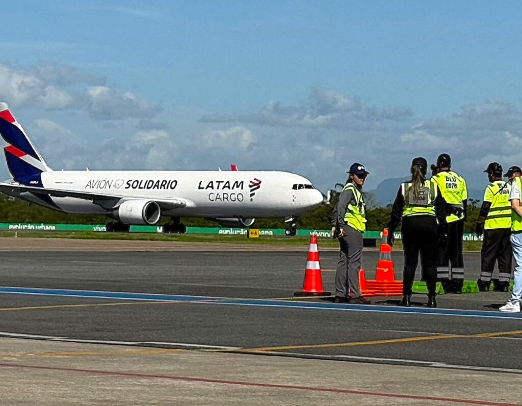 O evento reuniu aproximadamente 200 convidados, entre autoridades, parceiros logísticos e lideranças do setor, que acompanharam de perto a operação do cargueiro. A aeronave Boeing 767-300, operada pela Bringer Air Cargo, em parceria com a Latam Cargo, pousou no terminal às 8h42, procedente de Miami.