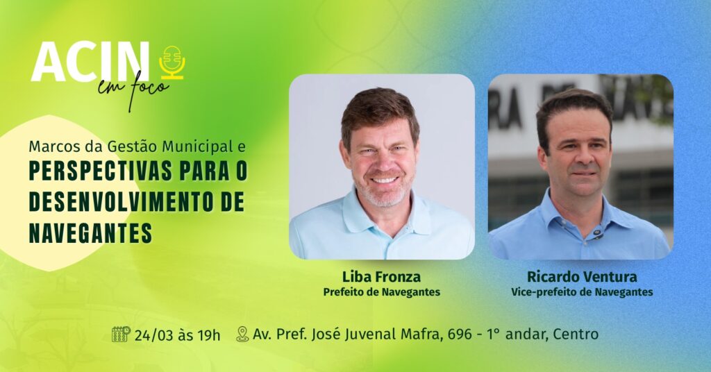 Empresários, lideranças e a comunidade de Navegantes têm encontro marcado na próxima terça-feira (24) para mais uma edição do ACIN em Foco, promovido pela Associação Empresarial de Navegantes.